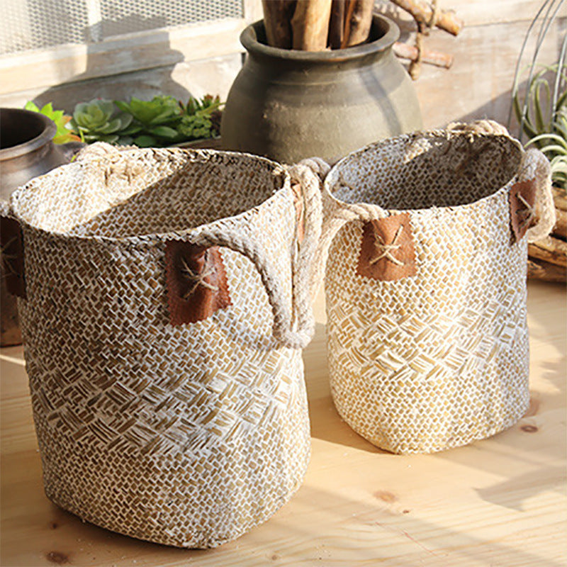 Rural Style Storage Of Natural Straw Woven Flower Pots